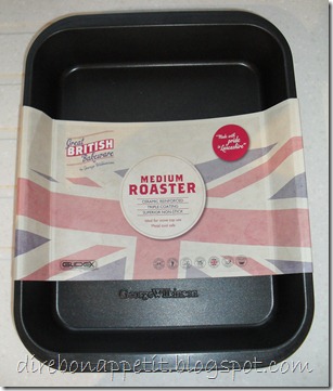 And the roasting tin? Well, I left it sitting while we ate, then cleaned it up after. With warm soapy water, the burnt crispy bits slid off easily with a nylon-type sink brush. It still looks like new, although I’ve only used it once. I feel the real trial for this product will be how well it fares when I get sloppy with the ‘looking after’ of it in terms of not using metal utensils, leaving it for three days before cleaning, etc. You know the type of thing! I’ll let you know.